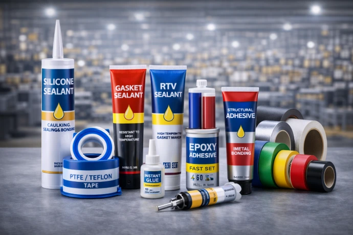 Silicone Sealant, Teflon Tapes, Duct Tapes, Masking Tape, Insulation Tape, Gasket Sealant, RTV Sealant, Epoxy, Glues,