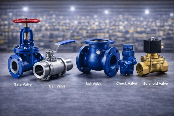 Gate Valves, Ball Valves, Check Valves, Solenoid Valves.