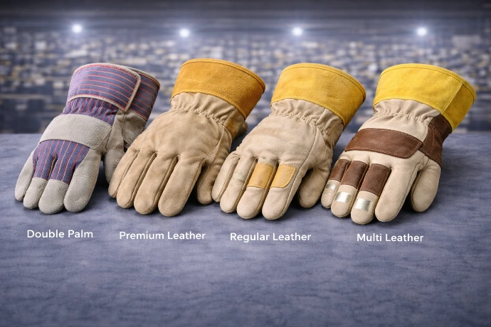Double Palm, Premium and Multi Leather Gloves.
